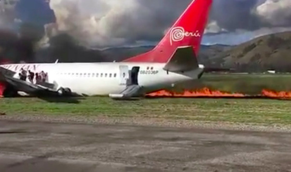[VIDÉO] Pérou: Un boeing rate son atterrissage et prend feu