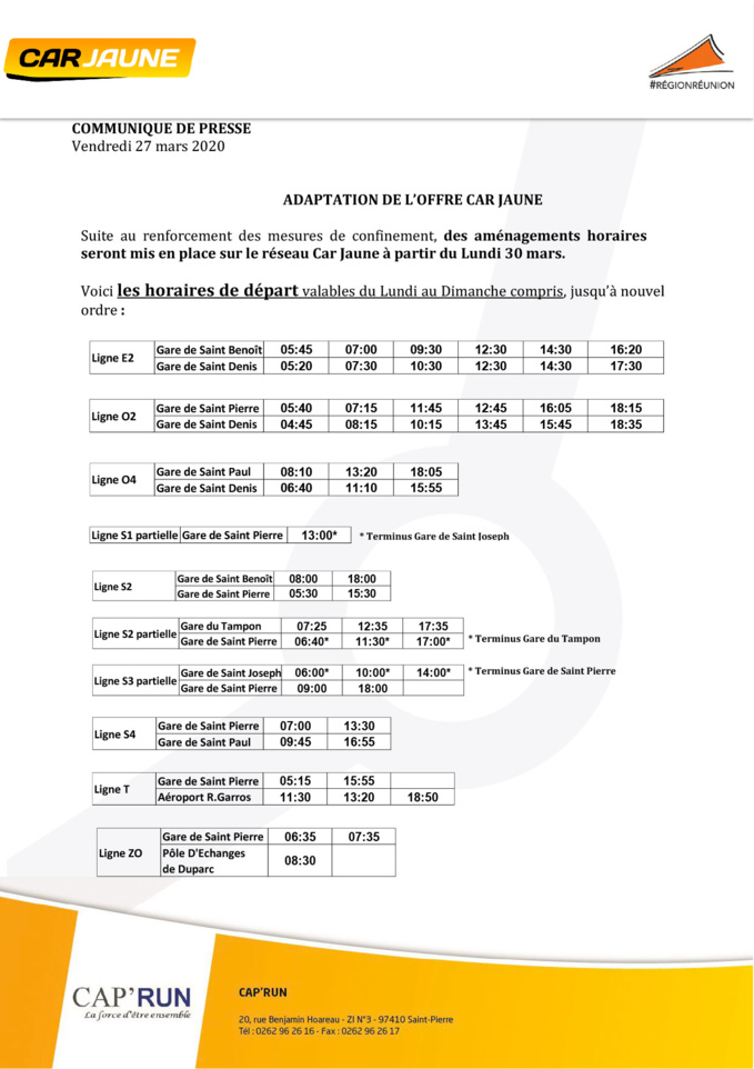Car Jaune - plan de continuité des servicesPar La Réunion Positive - Publié le Vendredi 27 Mars 2020 à 17:39