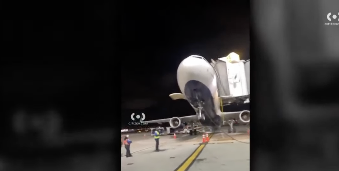 L'avion, lors du débarquement, a brusquement basculé vers l'arrière, laissant la proue de l'aéronef suspendue à trois mètres du sol. Cette situation préoccupante a été attribuée à un déséquilibre de poids soudain lors de la phase d'atterrissage, provoquant la chute inattendue de l'arrière de l'avion. Les témoins extérieurs ont été médusés par la scène.