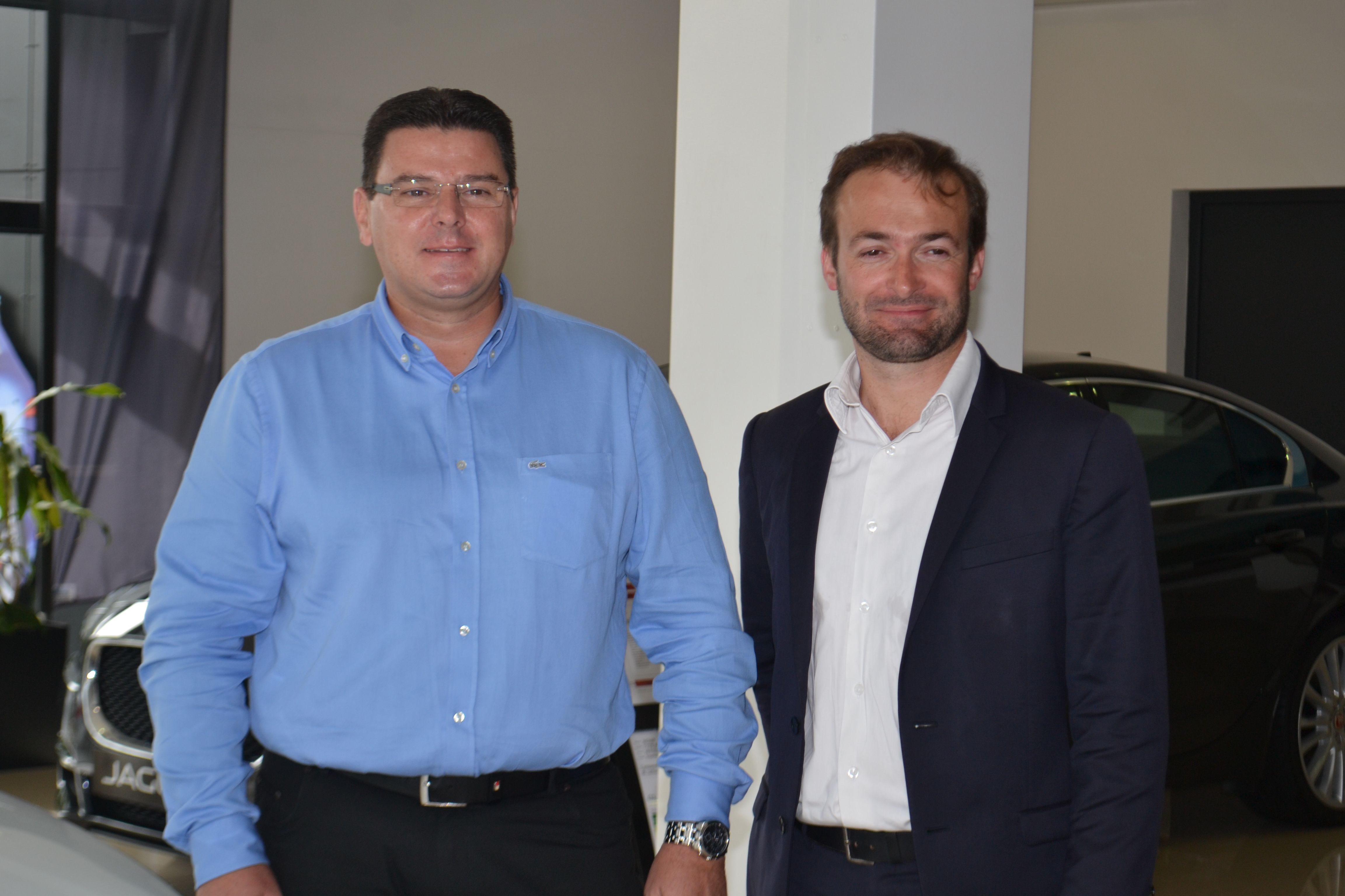 Grégory Legendre, directeur de Kolors Automobiles, et Amaury de Beaucorps, responsable de zone Jaguar et Land Rover France