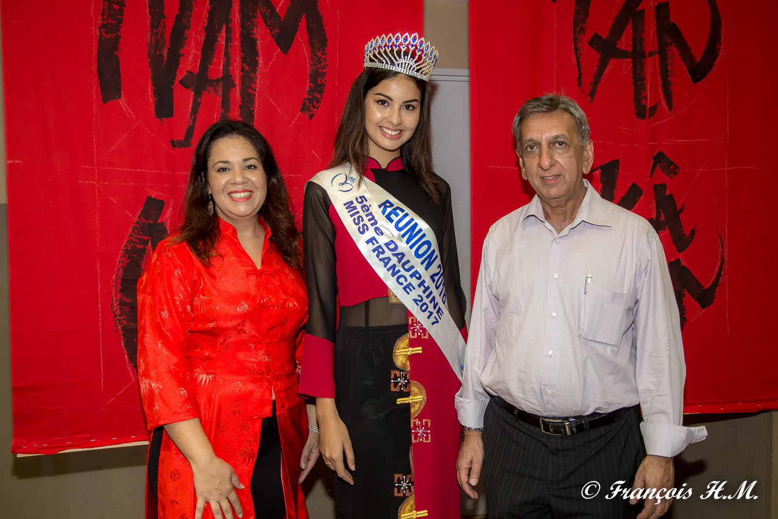 Magali Tarnus, présidente de l'AOAVN, Ambre N'guyen, Miss Réunion 2016 et 5ème dauphine Miss France 2017, et Aziz Patel du Comité Miss Réunion