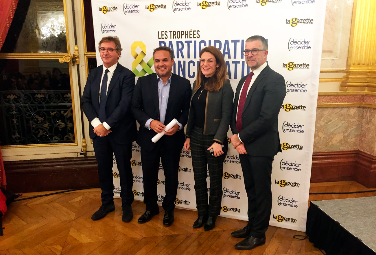 Chaque année, l’association « Décider ensemble » et la Gazette des Communes organisent les Trophées de la participation et de la concertation pour valoriser les nouveaux modes de participation. Ces Trophées visent à soutenir et promouvoir les actions de concertation réalisées par les collectivités, les associations, les collectifs de citoyens ou encore les entreprises publiques et privées. Le jury récompense les projets en leur attribuant 1 à 4 étoiles.