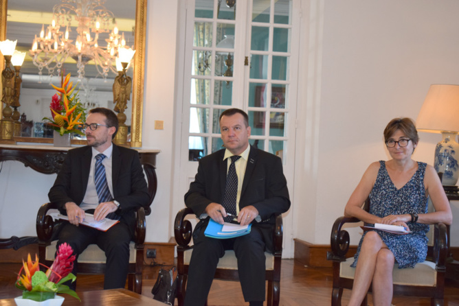 François Bellouard, adjoint au SGAR, Frédéric Carré, sous-préfet de Saint-Paul, et Christine Geoffroy, sous-préfète de Saint-Benoît