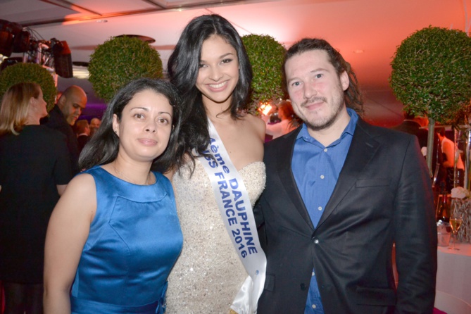 Azuima avec Célia Jourdheuil de Miss France Organisation, et Caroline Gavinier, productrice de l'émission Miss France 2016