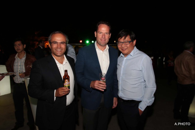 Boudewijn Haarsma du Groupe Heineken, Doron Wijnschenk, le directeur général des Brasseries de Bourbon, et Thierry Devimeux, ex-secrétaire général pour les Affaires Régionales à la Préfecture