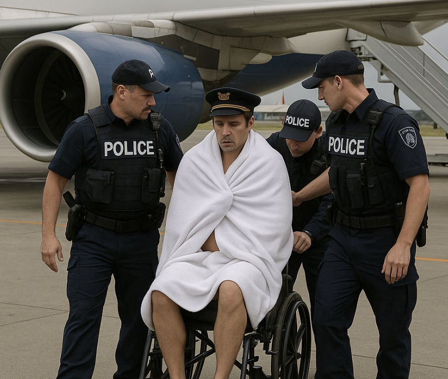 Tout a commencé lorsque l’équipage a remarqué l’absence soudaine de leur collègue, censé distribuer repas et boissons. Inquiets de ne plus le voir, ils sont partis à sa recherche. C’est dans les toilettes qu’ils l’ont retrouvé, nu comme au premier jour, dansant frénétiquement.